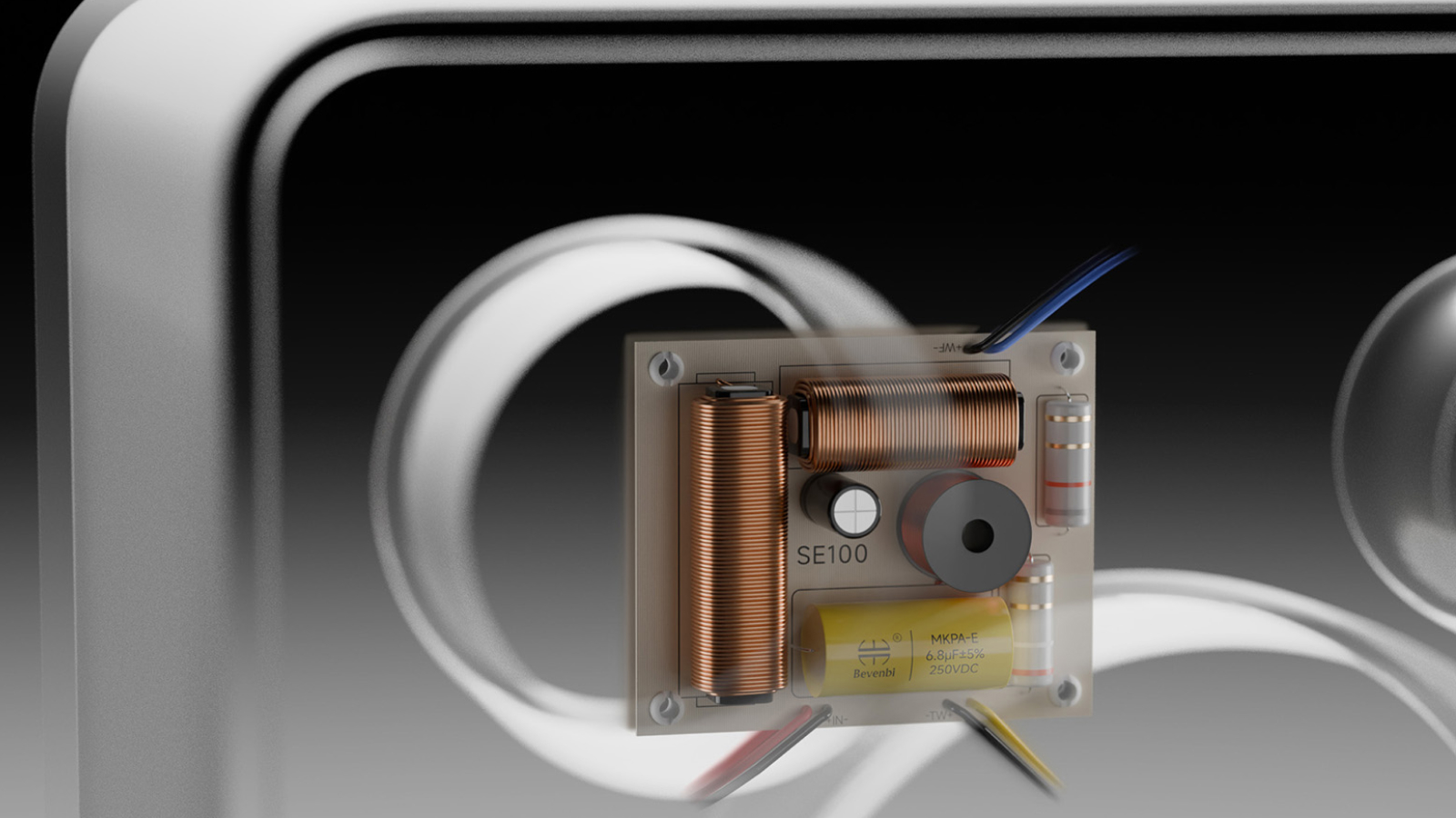 Двухполосная конструкция SE100 с кроссовером, использующим компоненты аудиофильского класса, обеспечивает безупречную фазовую и временную согласованность, создавая естественное, цельное звучание с идеальным балансом между энергией звука и его детализацией.
