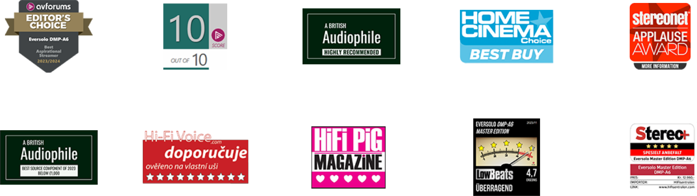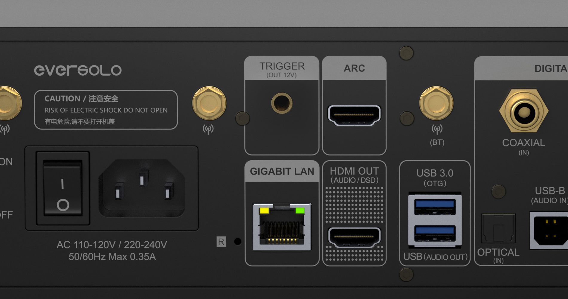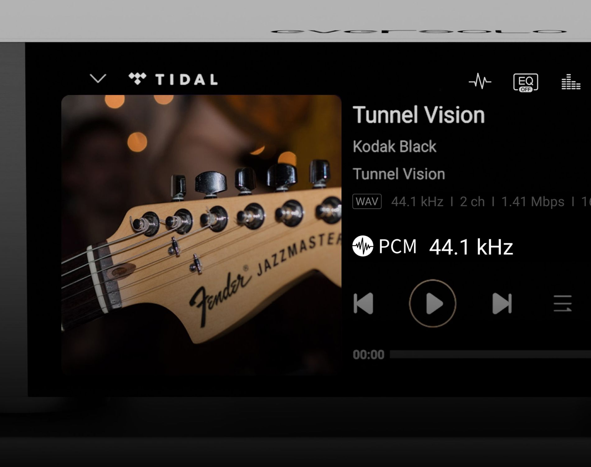 Разработанный Eversolo собственный движок обработки звука – EOS, обходит ограничения SRC, гарантируя наилучшее качество воспроизведения как локальной музыки из аудио файлов, так и стриминговых сервисов.
