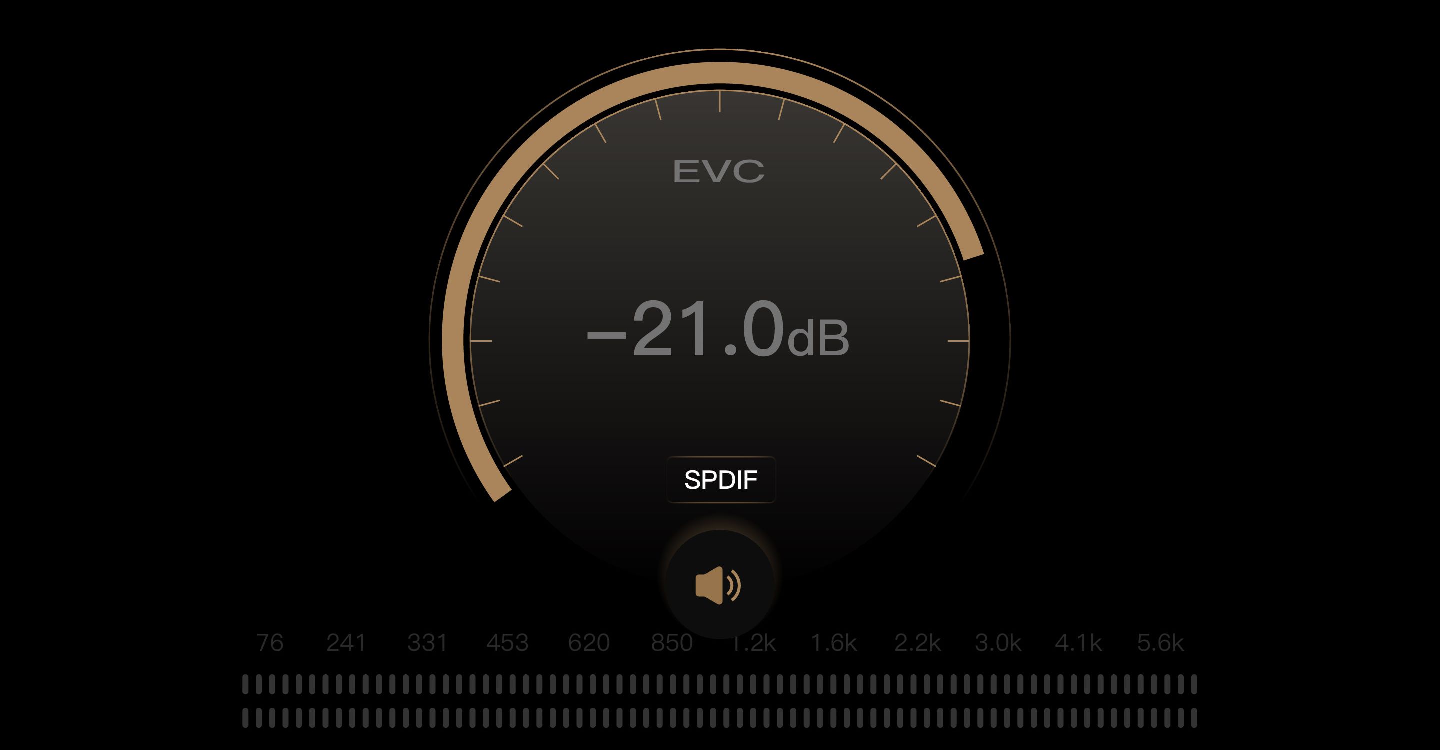 Уникальный алгоритм регулировки громкости EVC позволяет устранять ошибки на разных уровнях усиления, гарантируя, что форма сигнала всегда останется неизменной, вне зависимости от громкости.