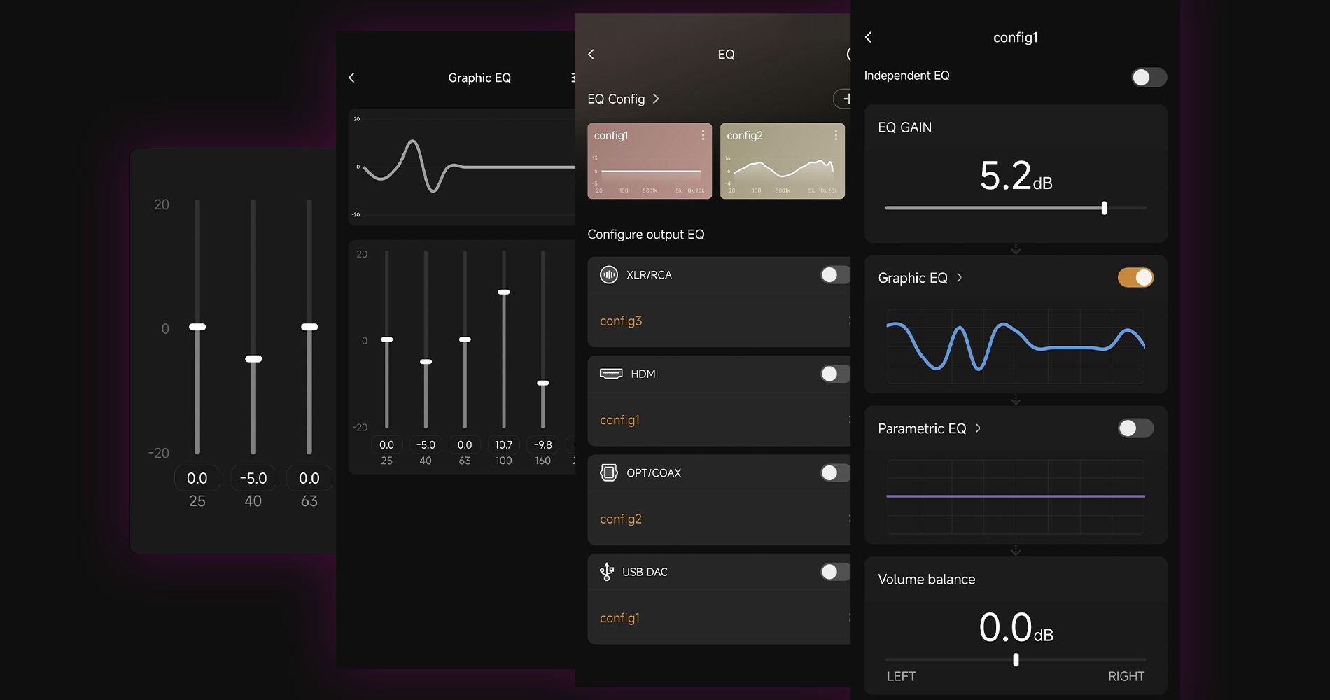 Благодаря 10-полосному эквалайзеру любой пользователь может настраивать параметры в соответствии со своими предпочтениями, точно обеспечивая регулировку усиления по полосам и баланс громкости для левого и правого каналов.